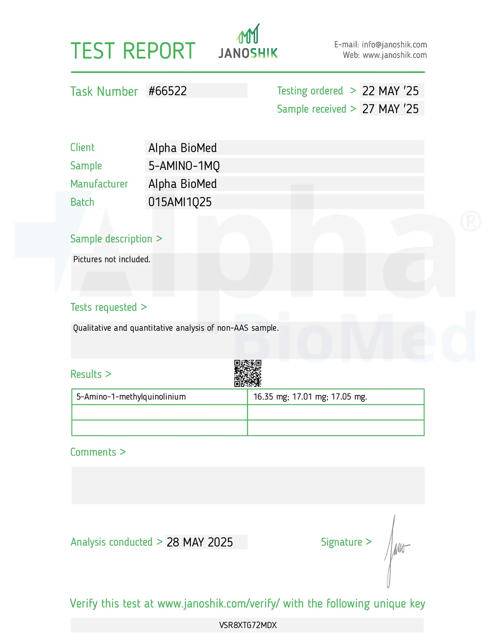 Core Molecule: 5-amino-1-methylquinolin-1-ium Format: Oral Tablets Mechanism: Selective Nicotinamide N-methyltransferase (NNMT) Inhibitor Purity: ≥98% (HPLC) Salt Form: Iodide or Chloride